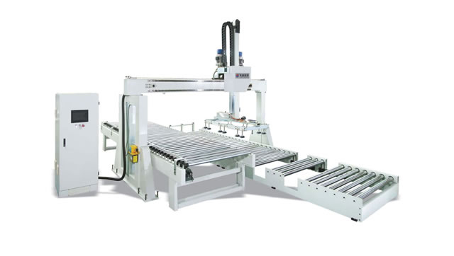 適用于板式家具、平面門、櫥柜側板、硅酸鈣板、玻鎂板、水泥纖維板等板式工件,配套連線作業時進行自動上料或下料;自動電腦控制人機界面觸摸式顯示屏:調整故障顯示,運行速度,往覆速度,修正參數,顯示工作狀態;吸盤機真空發生器采用德國SCHMALE;采用日本安川電機和伺服控制系統。